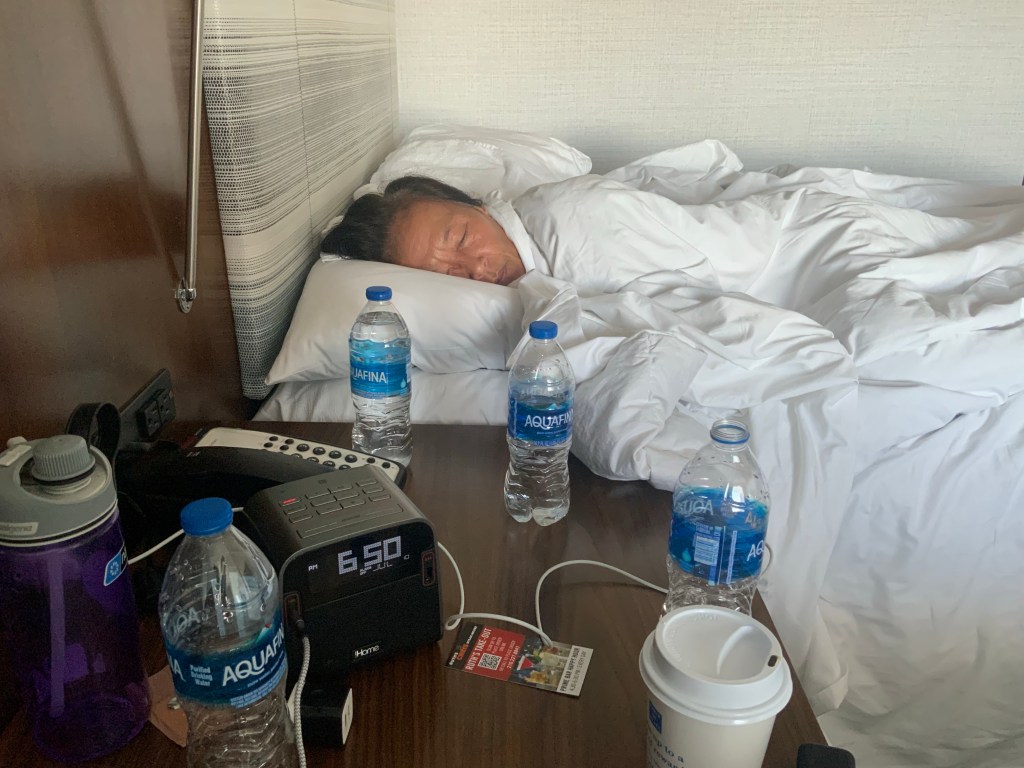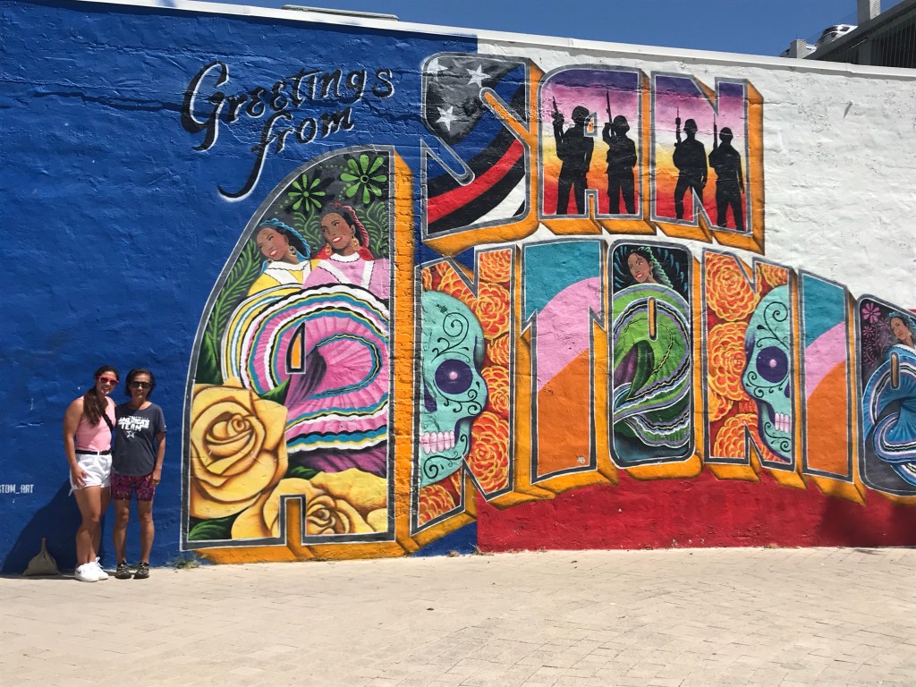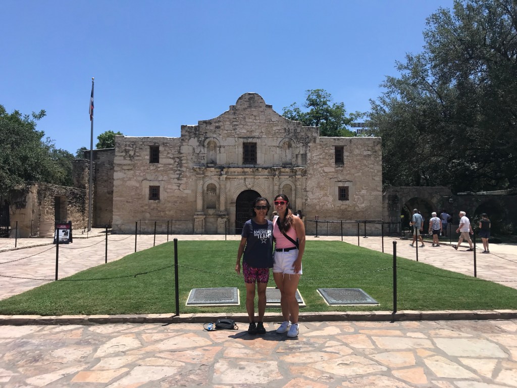 Mom started off the day with a 5 mile run along the Riverwalk toward the dam and lock while I slept in. Then, when she returned, we went to Commonwealth Coffee. I got a nitro cold brew, and mom got a danish and a flavored latte. We walked to THE ALAMO! We went into the Church and watched a cool video on Texas history. REMEMBER THE ALAMO! Then we stopped for lunch at Boudro’s Bistro, where we had table side guacamole and a grilled salmon salad, yummy! When we were at lunch, I saw a friend from my BOLC class there; what are the chances! After lunch, went on a walk all the way to the end of the Riverwalk, enjoying the beautiful flora along the way. It was another hot day with 100+ degree heat. What does that feel like, you might wonder? Well you ever open the oven while something is roasting and feel the blast of heat hitting you in the face? Needless to say, we were spent and we ran out of water, so we made a quick stop for drinks and calamari on the way back to the hotel. Mom passed out for 3 hours, while I blogged and watched tv in the nice AC. Finally, we went out for late dinner at Acenar’s, where we split table side guacamole and enchilada trio, SO GOOD. We are now certified guacamole experts! – Kristen with edits from Mom